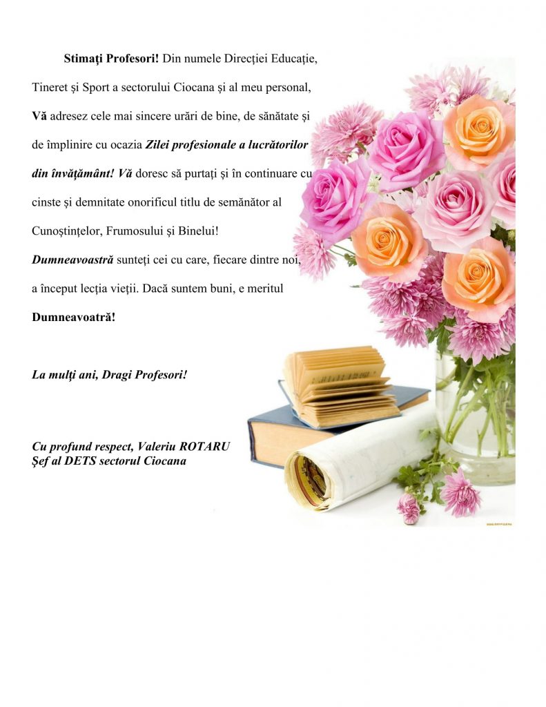 Mesaj de felicitare cu ocazia ”Zilei Profesorului”